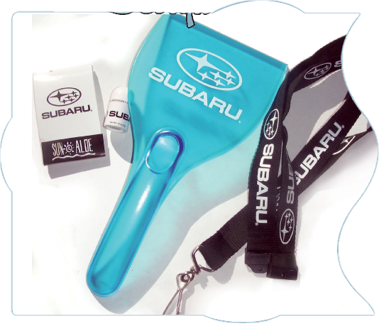 imprinted products (lanyards• sunscreen packets• ice scrapers• hats)