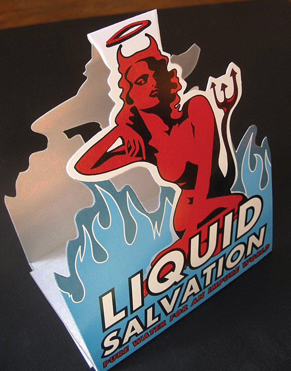 The Result: Created “Pure Water for an Impure World” slogan to link existing “She-Devil” icon to bottled water. Designed a tinted, embossed and flask-shaped bottle with transparent label. Created “Ask for the Flask” slogan. Designed and implemented new product line extensions, point-of-purchase displays, vehicle wraps, die-cut table tents, stickers, logowear, and highly-airbrushed "pin-up" posters. Redesigned “She-Devil” and developed “She-Angel” icon. Wrote and art directed all advertising. Brand grew to be a key player in the Las Vegas and Los Angeles nightclub scenes, and trend leader in the industry.